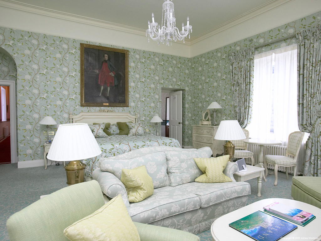 Move your mouse over the original picture taken to see the final image that was created of this bedroom suite at Dromoland Castle in County Clare.