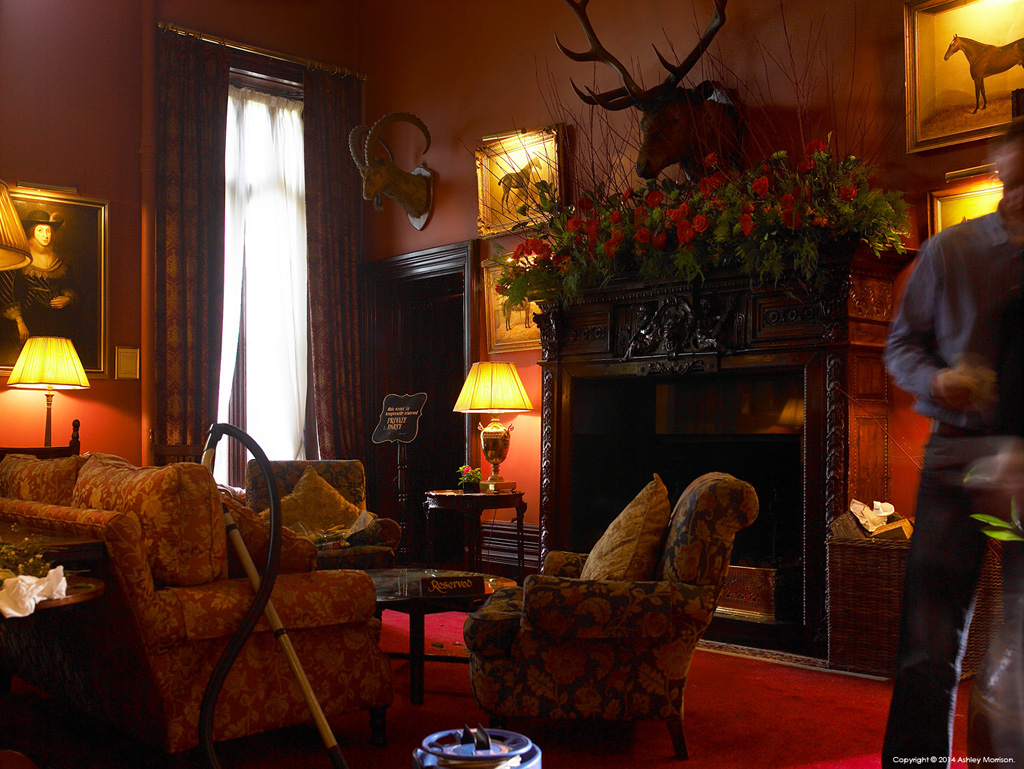 Move your mouse over the first picture taken to see the final image that was created of the lounge area at Dromoland Castle in County Clare.